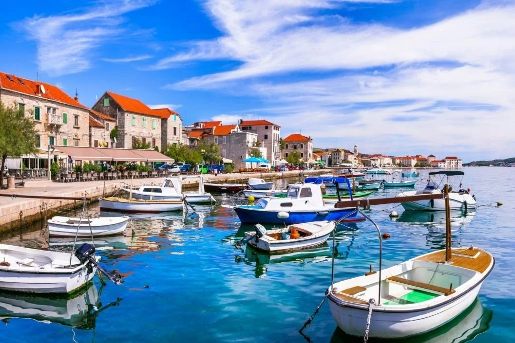 We will be staying just outside of Trogir, near Okrug Gornji. These towns are located approximately 25- to 30-minutes away from the wedding venue. Okrug Gornji is a quieter town in comparison to Split and offers larger villas with beach access and pools, which are typically not as available in Split, Trogir, or the Kastelas. You can stay within the walls of Trogir but will likely only find one- or two-bedroom apartments.